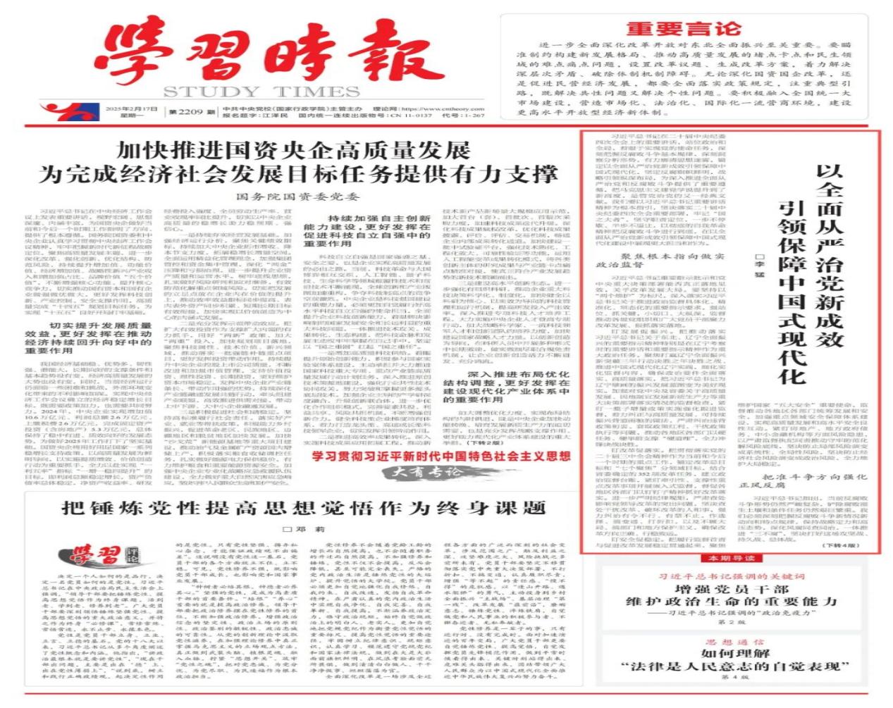 2月17日,《學(xué)習(xí)時(shí)報(bào)》頭版刊發(fā)遼寧省委常委、省紀(jì)委書記、省監(jiān)委主任李猛署名文章《以全面從嚴(yán)治黨新成效 引領(lǐng)保障中國(guó)式現(xiàn)代化》。全文如下: